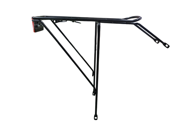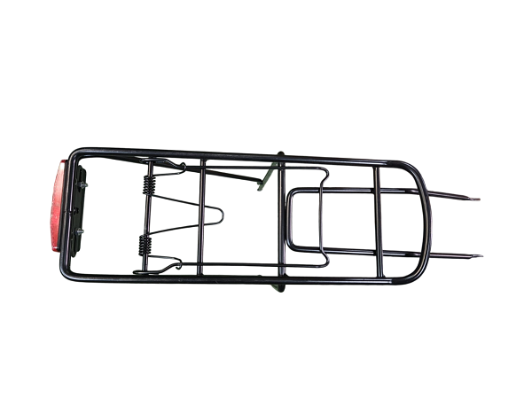 This carrier offers a stable platform for loading items. It also includes a strong central spring clamp and a rear red reflector for added safety and visibility.